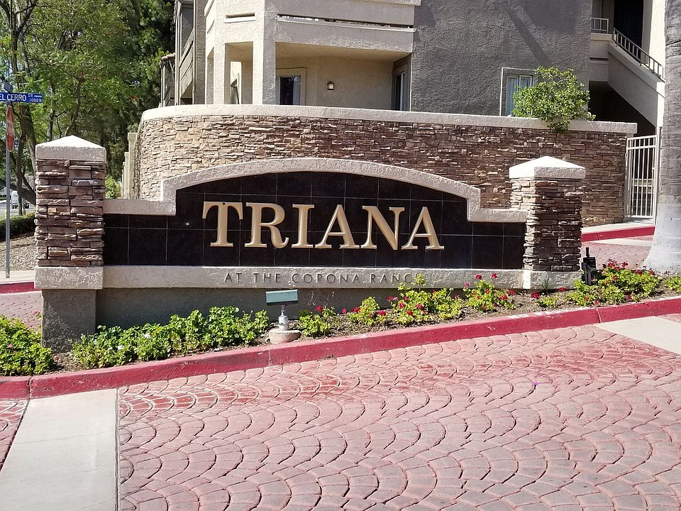 This condo is on the top floor for more privacy, no Shared Walls & No One Above, featuring vaulted ceilings, dual master bedrooms at opposite ends of the home, each with their own walk in closets, ceiling fans and sliding glass doors to two separate balconies with beautiful views, Extra long 1 car garage with plenty of storage & automatic opener, This great open floor plan offers breakfast bar, granite counter-tops, stainless steel fridge and black range, microwave and dishwasher, laundry area off kitchen with newer washer and dryer included. Triana HOA dues are included with rent and cover water, sewer and trash along with use of the community amenities - beautiful pool, spa, BBQ area, updated fitness room and a club house. All this and it is located close to great schools, wonderful shopping, restaurants and easy access to the 91 & 15 freeways.