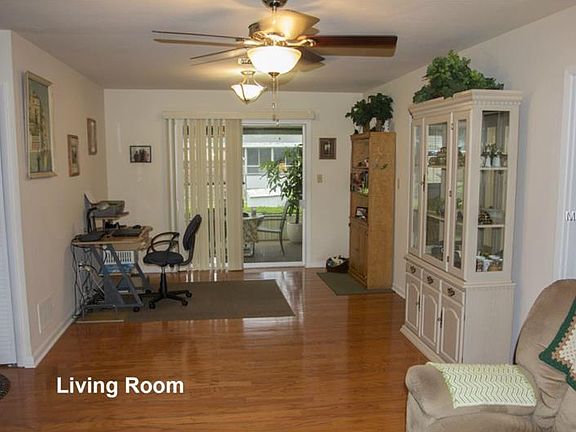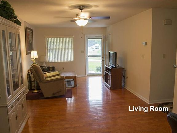 You'll love this tucked-away convenient location near shopping. Limited access allows children to play outside & dog walking a pleasure! Lots of updating, recently painted (inside & out), NEW ROOF in '14, BRAND NEW sliding glass door in Living Room, NEW lighting fixtures, NEW tile in Kitchen, NEW carpet in Master Bedroom, Completely fenced, 3 (THREE!) sheds, 5 paddle fans, large screened Lanai, Irrigation well & sprinklers, all appliances (incl. washer & dryer) remain + chest freezer & patio furniture will remain! The wood floors are a bonus in this wonderful home! You're going to love it!!