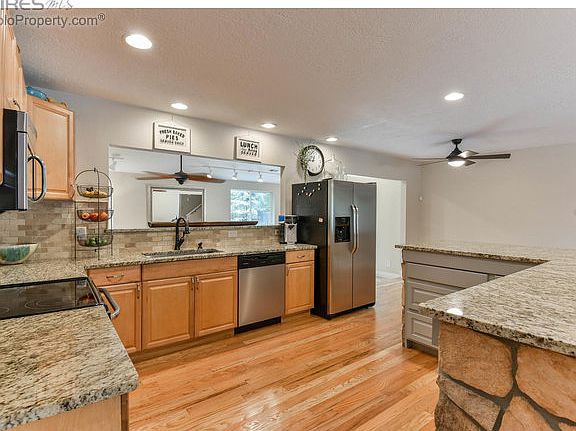 Extraordinarily well updated home in central Fort Collins is absolutely beautiful and will knock your socks off!! This is not your typical tri-level home! It is very open, is large, and features a gourmet kitchen, with granite counter-tops & island, new cabinets, stainless steel appliances, wood & travertine tile floors. Huge stamped concrete patio & built-in gas fire pit, along with newer roof, vinyl windows & stucco. Recently completed energy efficiency remodeling and this home is sound!