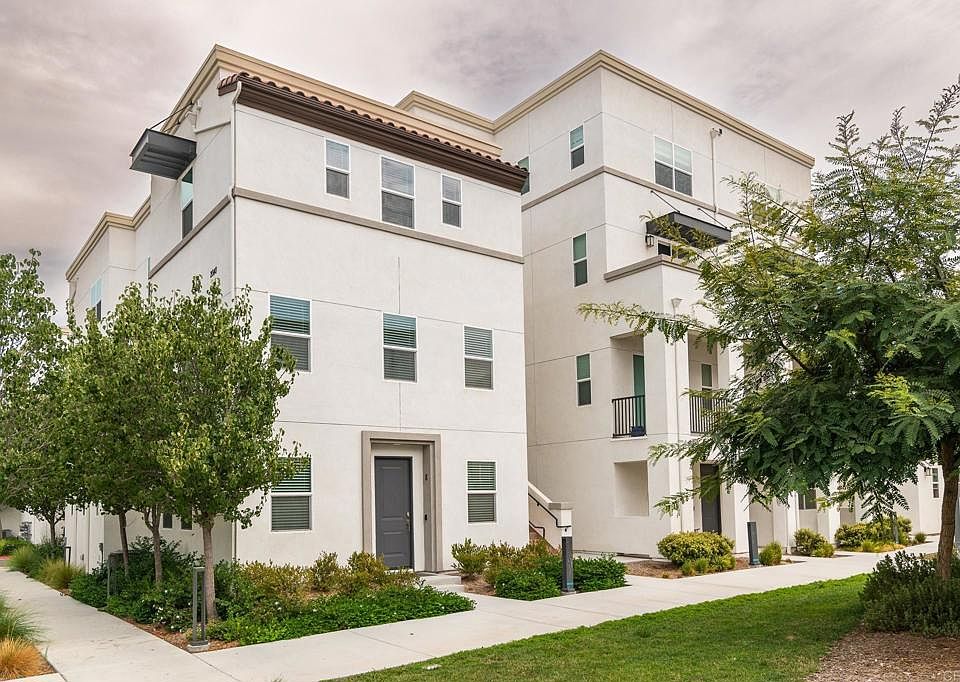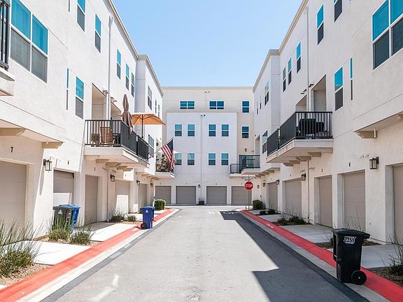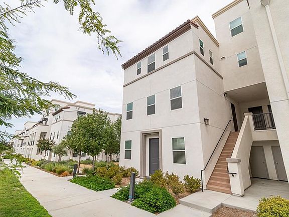 Modern and spacious contemporary townhome built 2019 in the Suwerte Community, Otay Ranch! Situated within walking distance to Otay Ranch Town Center and all it has to offer including the weekly farmers market! Tri-level, 3 Bedrooms, 3.5 Bathrooms, 2,025 sqft. with 2 car oversized tandem garage (has extra storage space and professional EPOXY flooring) with direct access to unit. There are TWO entryways – one on the main level, the other on the second level up the stairs. The first floor features a generous entryway and is ADA complaint, one bedroom with walk in closet and full bathroom. The second floor features a large family room, dining area and kitchen. There is a beautiful veranda with a view. Kitchen features granite countertops and an island. Generous cabinetry along with a pantry as well as alkaline drinking water at the kitchen sink. Additional property highlights include central AC/heating, soft water system throughout, tankless water heater, recessed lighting, surround sound speakers throughout including the garage and veranda, ceiling fans in bedrooms and built in electrical for easy installation of TV mounts in each room. This end unit shares only 1 wall and is light and bright with lots of windows! Generous guest parking in front. Community amenities include an outdoor bbq, playground, pickle ball court, dog park and community pool that is currently under construction. Move in ready!