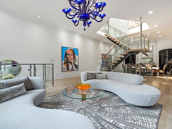 Spectacular, sun-drenched, Lincoln Park custom remodeled 5BR/4.1BA single family home situated in the heart of the trendy and walkable Armitage area on one of Lincoln Park's most desirable A+ blocks. This dazzling, light-filled home with ideal east/west exposure delights with its lofty ceiling heights, dramatic spaces, amazing windows, and magazine-caliber interior design. Gather family and friends to give your holiday toasts from the striking custom staircase created by Iron and Wire rising upward under a 22FT sky-lit atrium. Not to be outdone, the exceptional one-of-a-kind primary suite offers 23FT ceilings elevating into an upper level office and den area from which hangs a breathtaking 15FT Sogni di Cristallo chandelier handmade in Italy of Venetian blown glass. The home's main level has airy 12FT ceilings, fabulous wall space for displaying art, and a large west-facing family room off of the kitchen that opens effortlessly onto a spacious terrace with attached Solaire infrared gas grill and an adjoining garage roof top deck. The stunning chef's eat-in kitchen includes top-of-the-line Sub-Zero and Wolf appliances with two ovens plus a warming drawer, Silestone Lyra quartz countertops, custom cabinetry with 66" tall double-box uppers and numerous specialty features, and mosaic stainless steel backsplash with under-cabinet lighting. Every bathroom has been remodeled including the sumptuous primary bath with heated floors, waterfall shower with body sprays, tranquil soaker tub, extra-wide vanity with quartz countertops, and adjacent walk-in closet organized by California Closets. Other fine features include 5" white oak hardwood floors, blue Murano glass chandelier, chevron mosaic fireplace, custom glass and oak railings, and a remodeled basement with breezeway to an attached two car garage. Meticulously maintained home from top to bottom including all new Marvin windows throughout. Welcome home to the very best of urban residential living!