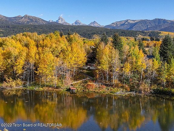 Breathtaking legacy Alta ranch, Sleepy Hollow, never before to market. Once in a lifetime opportunity, at a once in a lifetime price, to obtain one of the few classic Alta ranch properties in existence. Separately deeded 35 acre with three additional 5 acre parcels, custom log home, 2 accessory living quarters, barn with extensive horse and ranch facilities, 2 live water creeks, expansive 2+acre pond all set amidst complete solitude. Stunning Grand Teton and Grand Targhee Mountain Resort views that appear to rise from the doorstep of this amazing property just a stones throw from National Forest. Surrounded by thick groves of Aspen and Conifer, the property provides complete and total privacy all while mere minutes from the center of the Town of Driggs, and Grand Targhee Mountain Resort. Adjacent the main home is a large detached 4 car garage with a a 1 Bed, 1 bath living quarters above. Both the main home and detached garage living quarters step out onto the serene elevated NW facing patio overlooking the pond. Perfect for summer evening relaxing, dinners and delightful morning hours alone, or with friends and family. The truly spectacular patio is accented by a walkway to a dock perfect for sitting in the sun, or fishing.