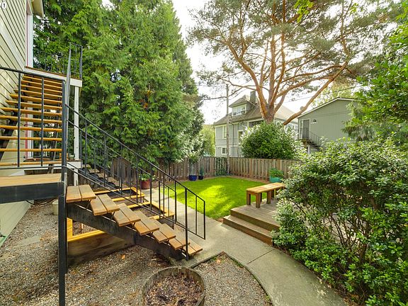 Kerns/Laurelhurst Area. Walk to shops, coffee, restaurants, parks & bus. Rare 2 unit condo with tuck under garage + driveway parking. Open updated floor plan ready to enjoy. Brick wood burning fireplace. Lots of updated windows for natural light. Laundry/Pantry off kitchen. Nice room sizes. Upper level unit so no one above you. Outside there is a fenced yard with a lawn, deck & your own raised bed garden area. New roof. updated stair treads, siding & paint. Hard to find combination of amenities.