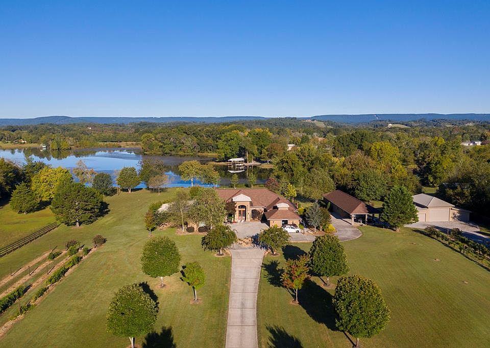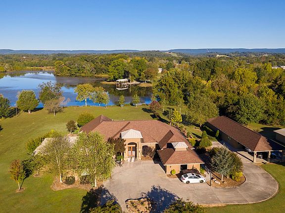 Magnificent waterfront estate on nearly 7.5 acres, an architectural marvel for unparalleled entertaining and stylish living! Showcasing masterful craftsmanship, this home offers unrivaled amenities for gathering, relaxation & entertainment. Enter into the tiled foyer, the home opens up to an area that hosts formal dining and sitting room with oversized windows capturing the view of nature and the lake. The kitchen offers granite/solid surface countertops, Kitchen Aid appliances with a European Dycor gas cooktop and high-quality plumbing fixtures. The spacious principal offers an on suite with natural gas fire place and leads to master bath room where you can relax in your deep soaker tub and massive walk in shower. The second master suite offers a sitting area and full bath. 2 additional guest rooms are connected by a Jack and Jill bathroom. Entertain your family and friends in your movie/media room with advanced built in acoustic system or take a splash in your inground pool (with new pool liner and upgraded filter). After a nice swim, enjoy the outdoor Artisan natural gas fire pit while the cook of the family prepares a meal on the patio kitchen (incl. under cabinet refrigeration). Give your guest their privacy in the guest house which comes with full bathroom, vintners room, partial kitchen, trophy case and built in Murphy bed. The main boathouse/motor home storage or external garage can accommodate all necessary equipment for any outdoor enthusiast. The wine connoisseurs will love the quarter of an acre of grape vines, varietals include Cabernet Sauvignon, Reisling and Zinfandel. During the winter months you will get to experience thousands of Sandhill cranes migrating to the exposed river bed. Between the eagles, hawks, cranes, fox and deer, this site is a real wildlife sanctuary. Fenced in perimeter for added security plus a long, secluded driveway. Conveniently located, close to Mark Anton regional airport, 45 min from Chattanooga and Cleveland. Make your appointment to see this one-of-a kind luxurious home!