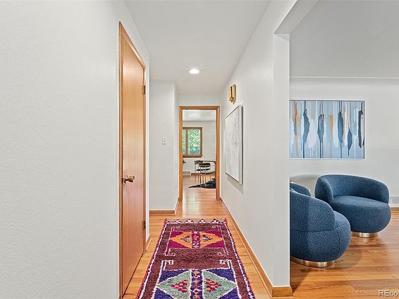 Single-level living unfolds on a vast 1/3 acre lot in this sought-after Applewood neighborhood that is tranquil, yet still close to new restaurants and shops at Gold's Market. A towering tree frames an elegant exterior, welcoming residents into the ranch-style layout teeming with mid-mod elements. Hardwood floors flow into a spacious living area with picture windows and coved ceilings. An open-concept dining space with a stone-surround gas fireplace features a large sliding glass door for easy access to the covered back patio. Tucked beneath a skylight, the updated kitchen breathes farmhouse style with sage-colored cabinets, a deep apron sink and a peninsula island. An adjacent laundry/mud room adds freshly crafted convenience, along with a large pantry, 1/2 bath and another door to the backyard. Each private bedroom offers a serene escape with wood trim and generous natural light. The primary suite features an updated bathroom with a walk-in shower. You will fall in love with the park-like backyard, surrounded by mature shrubs and privacy fencing. A stone patio area features a gas hookup for you to add a firepit or grill. Both covered and uncovered patio spaces offer venues for home gatherings; or, when the neighborhood beckons, enjoy proximity to Gold’s Marketplace and gorgeous green space at nearby Crown Hill and Paramount Parks. Other features include new paint throughout the home and garage interior, updated electrical, a tankless hot water heater and ditch water shares to irrigate the front and back yard areas.