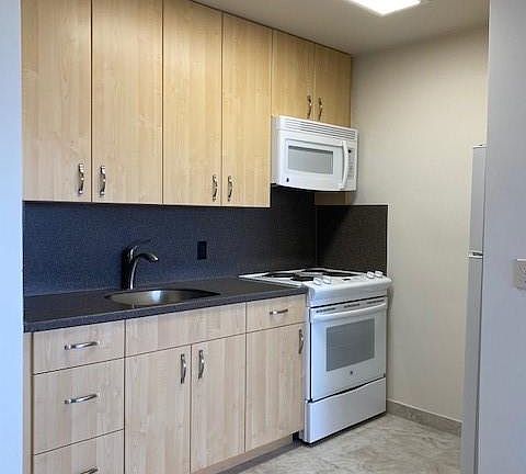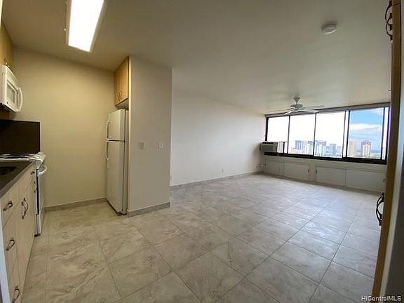 Available now, a Spacious 395 sqft. very nice recently renovated Studio for rent with one assigned, secured, parking stall. For your safety, 2040 Nuuanu Ave. is a secured building. **The unit includes it's own stack washer / dryer in the unit for your conveyance.** The kitchen includes a range / oven, microwave hood, and refrigerator that are all newer appliances, with newer cabinets with quartz counter top and an under mount stainless steel sink. Flooring in the unit is wall to wall hard surface ceramic tile throughout. In the main room for your comfort is a window ac, a ceiling fan and storage cabinets. A full size bathroom with even has a small pantry closet.