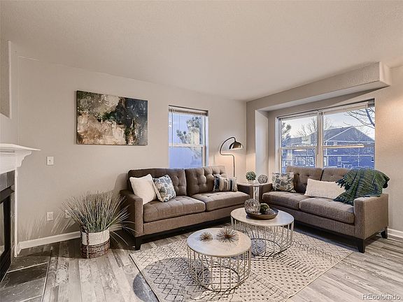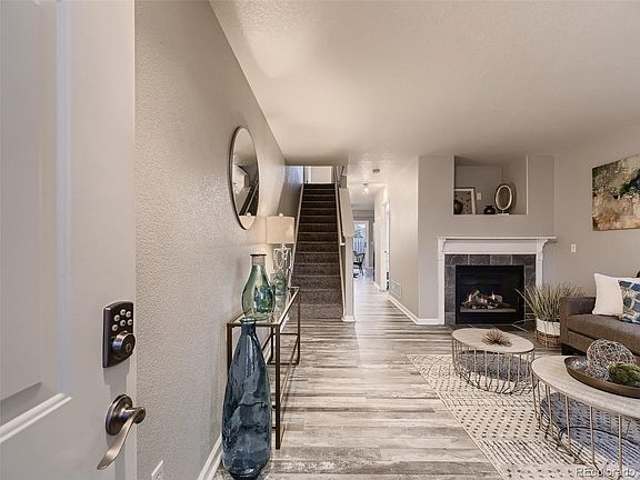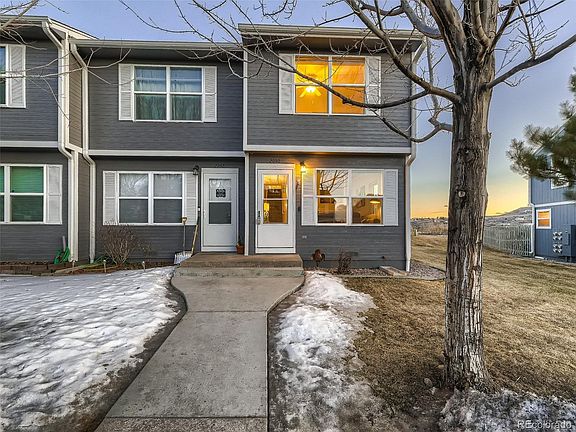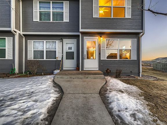 Gorgeous 2 bedroom, 2 bath end-unit two-story condo with great location! Backs to 5 acre parcels with nice views! Updated throughout with fresh paint, newer luxury vinyl flooring throughout main floor while the well appointed eat-in kitchen features white cabinets, new granite countertops, stainless steel appliances featuring a convenient dual oven range! The end-unit location provides wonderful natural light and nice views from every room while the cozy gas log fireplace in the living room provides welcome warmth and ambience! The large bedrooms upstairs both have vaulted ceilings and nice views while the primary bedroom features a large walk-in closet! Both the main level half-bath and upstairs full bath have updated vanities and fixtures! 2 parking spaces are included! Great Castle Rock location near Fairgrounds Regional Park with convenient access to Plum Creek Pkwy, I25, downtown Castle Rock shops and restaurants and an EZ commute to Ridgegate light rail and Denver Tech Center! This beautiful home is sure to please and is a true must see!