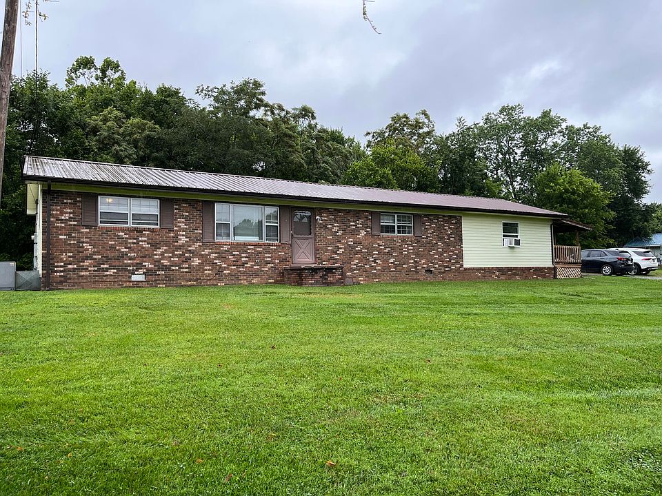 Close to town but you do not pay city taxes only county County taxes are $394.00. Large level fenced yard for animals or children. Very Nice 1875 sq. ft. brick home that is immaculate. Crown molding throughout the home. Fans in all the bedrooms and living room. I Gray carpet and laminate flooring.. covered side porch and open back deck. .6 acre. The metal roof is is 3 years old and the Heat and Air was put in 2012. Comes with appliances.