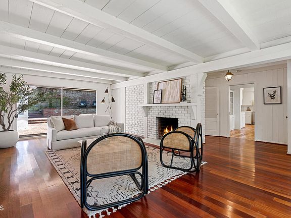 This character-filled 3 bed, 3 bath home boasts 2,128 SF nestled on a generous 19,772 SF lot in the heart of Bel Air! Upon entering, you're greeted by the warm cherrywood floors & attractive wood-beamed ceilings. The living room features a brick fireplace, large window bench seat, & sliders that beckon you to the backyard. Mid-century charm abounds in the formal dining room, the ideal setting for hosting intimate gatherings or lavish dinner parties. The kitchen, with its tiled counters, character built-in shelving, diamond-pane bay window, & breakfast nook, offers ample room for culinary creations & storage. Adjacent is the convenient laundry room and 3/4 bath, perfectly situated for everyday ease. The first guest bedroom, currently used as office space, provides versatility to suit your lifestyle needs. Down the hall is a second guest bedroom with a window bench seat and a 3/4 bathroom adorned with attractive tile floors, counter, & shower. Escape to the primary bedroom sanctuary, complete with plantation shutters, a wall of built-ins, and a window bench seat overlooking the lush surroundings. With plenty of closet space, a vanity area, & an ensuite full bathroom, relaxation & rejuvenation are inevitable. Step outside, where a large brick patio, pool, spa, and verdant greenery await. Whether you're lounging poolside or entertaining under the stars, this backyard offers the ultimate California living. Don't miss your chance to own this quintessential gem in coveted Bel Air!