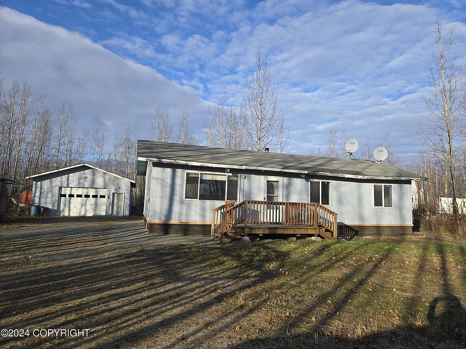 Great opportunity to invest in a rental or fixer upper. 2 bedrooms, 1 bath, 4 car garage or 2 cars and a great shop space! Spacious living, kitchen area. One acre lot. sold as is.