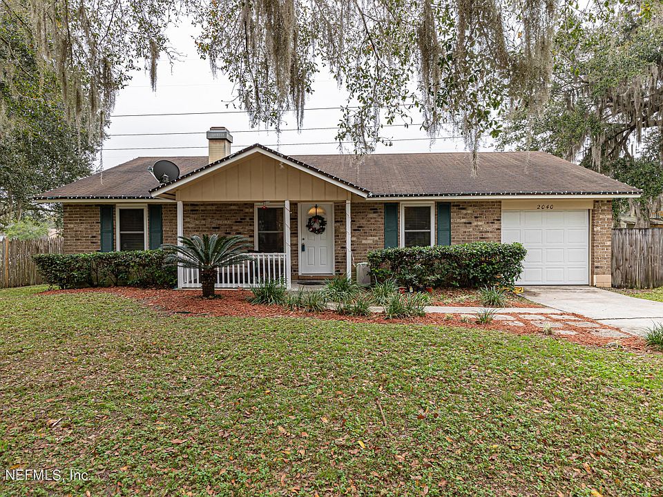 Welcome to your new home! This adorable, cozy ranch is move in ready and waiting for new owners! This sweet home features a brand new architectural shingle roof installed 12/18/2020! Updated kitchen and bathrooms, fresh paint and freshly cleaned carpet. This home has a split bedroom floor plan and lots of natural lighting along with a wood burning fireplace. The home is located on a quiet cul-de-sac and within minutes of the First Coast Expressway.