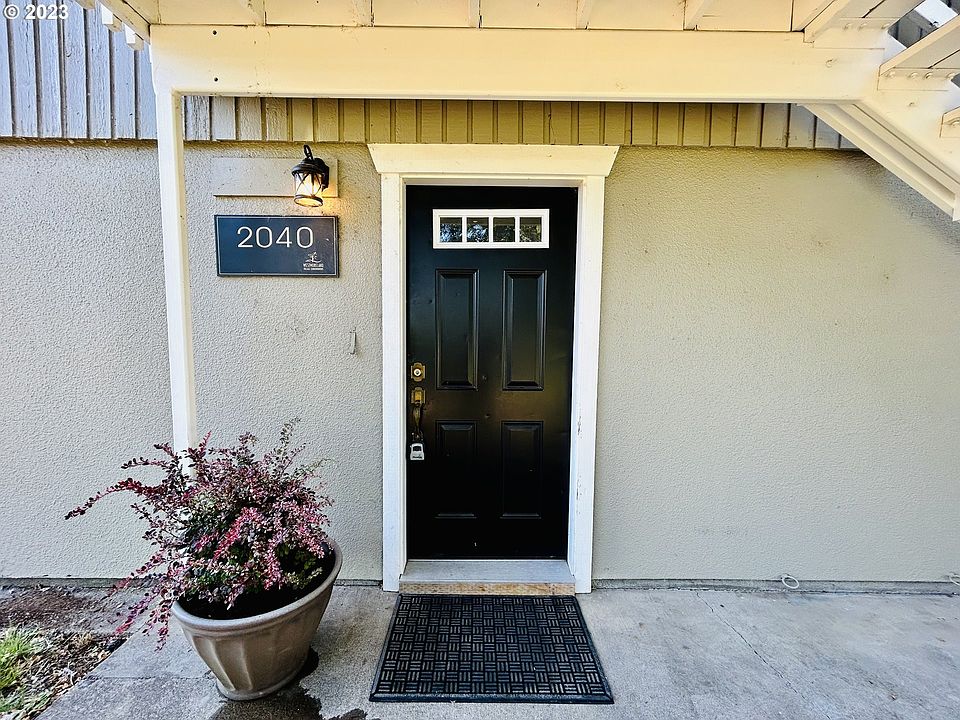 Welcome to this delightful, ground floor condo! This bright and inviting unit offers a modern and stylish space that is sure to impress. The french doors flood the space with natural light, creating a warm and welcoming atmosphere throughout. Beautifully updated bathroom, fresh interior paint and brand new LVP flooring throughout. Stackable washer/dryer and all appliances stay! Kitchen features eating bar, range, refrigerator and dishwasher. With its convenient ground floor location this condo offers easy access to a beautifully maintained patio area, perfect for enjoying your morning coffee in the dappled shade. Dedicated covered parking. Located in the Westmoreland neighborhood, this condo is just steps away from the Fern Ridge bike path, parks, schools, bus line and shopping. Don't miss the opportunity to make this recently updated condo your own!