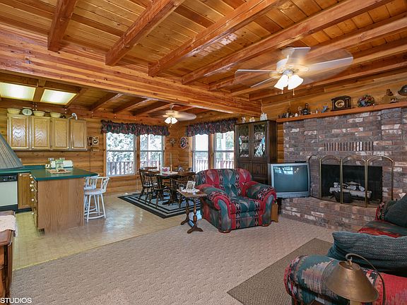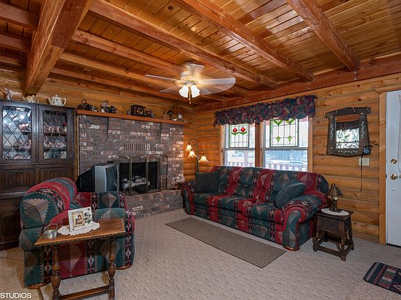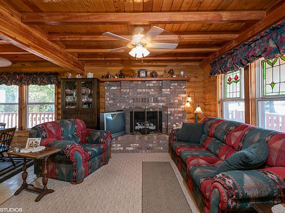 Unique Log Cabin home with panoramic views of Cedar Mtn., Three Peaks, Cedar Valley, and Bumblebee Mtn. The home is conveniently located near shopping, restaurants, and parks. Abundance of adjacent trees & vegetation feels like country living. This home features 3 levels, 3 gas fireplaces, a wrap around deck & a master suite with French doors opening onto the deck. Beautiful wood paneled walls, ceilings & beams.