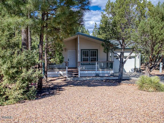 Don't miss this one! This home is like new inside and has only been stayed in a handful of evenings. Ideal location in sought after Hacienda Pines, a 55+ gated community. Light and bright floorpan, lovely vaulted ceilings, spacious kitchen with an island, cabinets with pull-out shelving, and some appliances have never been used! Large master suite with a double vanity, garden tub and shower, and a walk-in closet. Enjoy the whispering pines on your covered front deck or star gaze on the expansive side deck. Keep you car clean with paved roads, concrete driveway and attached garage. The home has a brick stem wall and a full slab. Furnishings are neegotiable on separate bill of sale.