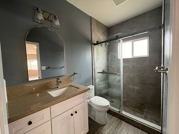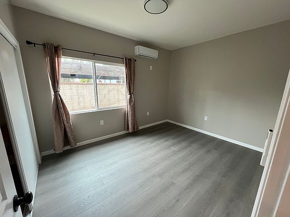 This brand new modern 2-bedroom, 1-bathroom ADU, built in 2025, is located at the rear and encompasses 832 square feet. With 9-foot ceilings, it provides an open and spacious feel. The back unit features a well-appointed kitchen, complete with quartz countertops and new appliances, including a gas ranges and a refrigerator. Additional amenities include a separate laundry/storage room with a washer and dryer, double-pane windows, and a mini-split AC/heater for quiet comfort. It also includes a heat pump water heater and solar panels installed on the roof. The property boasts LED lighting and a dedicated 200-amp electrical panel. This is a must-see! No smoking allowed. Renter is responsible for water and electric.