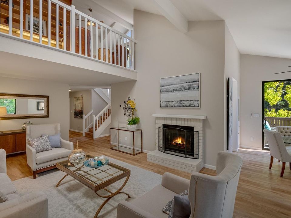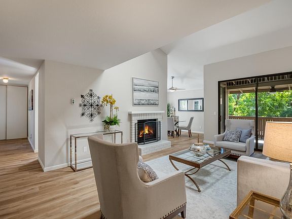 In a quiet location, off of Rock St, is this charming 3 bedroom, 3 full bathroom condo in beautiful Mountain View. Easy access to freeways and public transportation and moments away from the Google Plex and Shoreline Amphitheater. New Luxury Vinyl Plank flooring throughout the downstairs. The kitchen has been remodeled with new appliances, granite counter, and plumbing fixtures. The living room has vaulted ceilings with skylights, fireplace, and sliding glass door to a covered patio with ceiling fan. In addition, you will find 2 bedrooms and 2 full bathrooms, one being the primary bedroom with walk-in closet, vaulted ceiling, ceiling fan, and a separate patio. Primary bath has been beautifully remodeled. Additional guest bedroom and bath on this level. Upstairs is a spacious loft with beautiful built in office system, desks and cabinets plus additional walk in storage closets making for a great home office all brightened by skylights. A third bedroom and bath completes the upstairs.