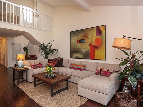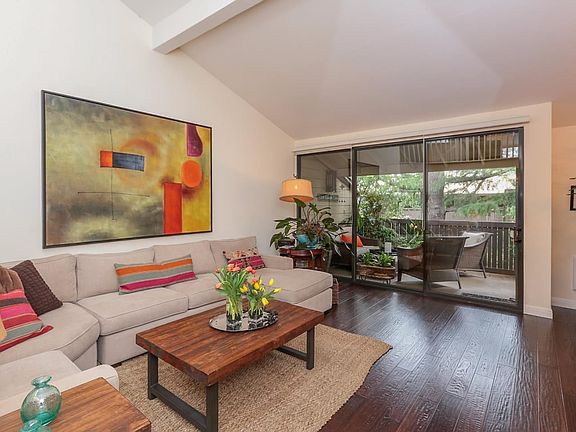 With nearly 2,300 square feet of living space on two levels, this meticulously renovated 3 bedroom, 3 bathroom spacious and luxurious condominium feels like a single family home. The well-designed floor plan has two master suites, one on the ground level and one on the second level, plus a loft that is perfect for a home office, study or family room. Downstairs features espresso-stained white oak hardwood floors, custom light fixtures, dramatic vaulted ceilings and a fireplace. The living area opens onto a deck with green-belt views. The eat-in kitchen features granite slab countertops, Italian tumbled stone backsplash, stainless steel appliances and ample storage. A full bathroom with Italian marble, master suite with a remodeled bathroom, laundry area and another large bedroom with a balcony complete the first floor. The sun-lit upper level features an open loft, huge master suite, high-ceilings and walk-in closet. Fantastic location in the heart of Silicon Valley.