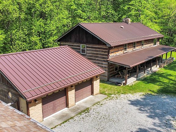 In the beautiful Hocking Hills, you will find this astonishing 5276 sq. ft. hand-hewn, log home on 15.46 acres of beautiful woods in a private setting. This home offers 3 levels of living, multiple balconies to sip your favorite beverage & enjoy the beautiful views and the abundance of wildlife, multiple woodburning stoves & a wood burning fireplace that you will find cozy & comforting during the winter months. This is a one owner home that has been impeccably maintained; new metal roof in 2015; all new windows in 2021, new gutters & gutter guards in 2023, hot water heater in 2021 & water pump in 2022. It also offers a 28 x 40 2-story building with 2 car bays & a fantastic 2nd story, great for finishing for additional living space. Just 10 miles to Old Mans Cave on a dead-end road.