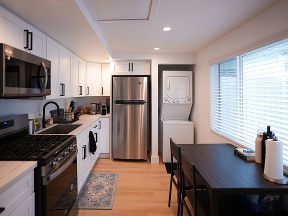 Fully Furnished 1BR ADU Private Yard, Gated, All Utilities Included Mid or Long-Term Stay. Newly Built in 2025 Welcome to your private retreat a thoughtfully designed, fully furnished 1-bedroom ADU located behind a secure gate in a peaceful residential neighborhood. Ideal for mid-term or long-term stays, this modern unit is perfect for working professionals, couples, or anyone in need of a turnkey living experience. What's Included: Fully furnished with queen bed, sectional sofa, Smart TV, linens, and stylish decor All utilities paid: water, electricity, gas, trash, high-speed internet, and A/C Private entrance and fenced-in backyard with turf, seating area, and covered patio In-unit washer and dryer Full kitchen with stainless steel appliances, cookware, and essentials Sleek bathroom with walk-in shower and modern black fixtures Ductless mini-split A/C and heat for year-round comfort Ample natural light, window coverings, and private ambiance Dedicated work-from-home space with desk and chair Free and easy street parking Layout: 1 Bedroom with double mirrored closet and outdoor access - large sliding door to your private back yard. 1 Bathroom with walk-in shower Full kitchen, living room, dining nook, and laundry inside unit Location: Convenient access to local shops, grocery stores, parks, and major freeways. Quiet, walkable, and residential setting that feels tucked away, yet central. 2.2 miles from Kaiser Permanente Woodland Hills 0.4 miles from Pierce College CSU Northridge (CSUN) - 10-15 minutes Westfield Topanga & The Village - High end shopping, restaurants, fitness, movie theater (5-10 mins) Costco, Trader Joes, Whole Foods - All within 10 minutes Winnetka Recreation Center - Just a few blocks away 101 & 118 Freeways - Less than 10 minutes All bills paid for by owner Fully furnished