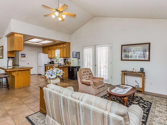 2003 3/2 home that is attractively decorated. Large square tile flooring in the kitchen, granite counter tops, and newer microwave and freestanding gas stove/oven. Enjoy a formal dining room that is ideal for holiday feasts. Enjoy the luxury of the hardwood floors. Dual whole house fan that cools off the house in no time during those summer evenings. There is an eating area off the kitchen with French Doors to a brick patio and gazebo. Off the back patio is a privatein-ground pool and heated spa. The pool has a quality sweep and skimmer for easy maintenance. The home features a solar system that is fully owned. Current owners pay just $200/year for power. There is a 2500 gallon storage tank up the hill, that gravity feeds the home in the event of a power outage. Garage was converted into a computer room with fiber optics and built in cabinets. This room could be returned to a two car garage easily. There are 2 RV set ups complete with pads, waste dumps,water and power hookups.
