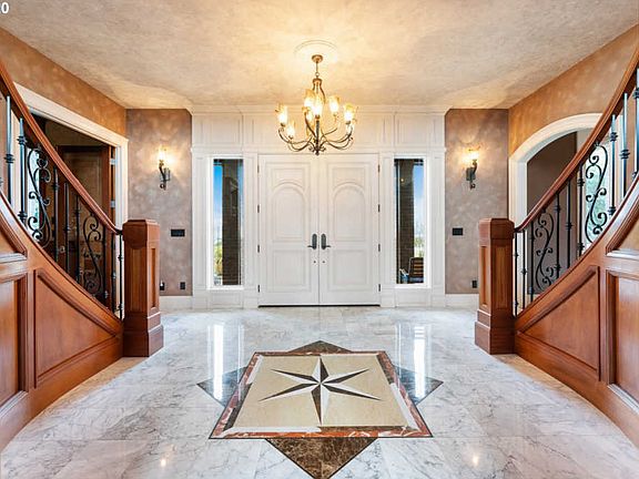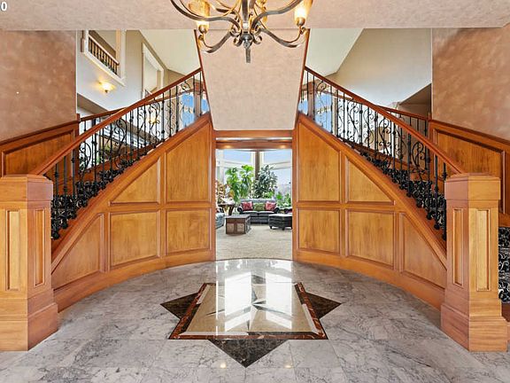 Incredible hilltop home that checks all the boxes. Formal living, & dining rm & family room w/cozy fireplaces throughout. Make your grand entrance with a huge staircase overlooking the foyer and living room. Large windows throughout the home provides ample light. Sit back and relax in your own media room with a bar to entertain. Enjoy the hot tub overlooking the view of the river and an oversized shop with it's own kitchen and office space. With 5 acres, the possibilities are endless.