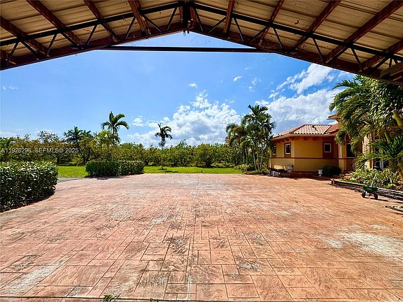Welcome to Serenity Grove located in the highly sought-after Redlands agricultural area of Miami-Dade County, offering the perfect blend of serene country living & income-producing potential. This beautiful one-story ranch-style home sits on a thriving avocado grove and is enhanced by an array of tropical fruit trees, including guava, lychee, longan, mango, Jamaican cherry, and more, making it an ideal retreat for those seeking space, privacy, & agricultural income. The home features a desirable split floor plan with soaring 15-foot ceilings, elegant marble & wood flooring, & impact-resistant windows and doors for added safety & efficiency. With two separate air conditioners & two heaters, the home ensures year-round comfort. Its inviting charm & spacious design make it perfect for both everyday living & entertaining. A large 4-car carport provides abundant covered parking, complemented by an adjacent storage shed for tools & equipment. At the rear of the property sits a 1,200 sq ft galvanized steel workshop with 15 foot ceilings complete with a bathroom, second-floor loft, and two additional rooms. Previously used for storage, this structure can easily be converted into a guest house, office, studio, amazon warehouse, E-commerce center, car enthusiast or extra wellness space—offering tremendous flexibility and value. Serenity Grove combines agricultural income, peaceful living, and investment potential in one exceptional offering. This is country living at its best!