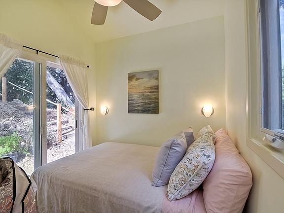 This small country guesthouse is set on 2.5 acres surrounded by 100+ yr old California oaks and fruit trees in rural Elfin Forest. Elfin Forest is rural, but convenient, and close to the ocean, the only designated rural area of San Diego County west of I15. True country life with ranches and farms, yet a10 minute drive to the Pacific Ocean, 1 mile to shops. The best of both worlds: feeling away from it all, but close to shops and San Diego's major arteries. Horses next door, 40 miles of trails abut the property. Wildlife abounds! Set in a serene, healthy environment, this beautiful guesthouse is secluded and private, has a modern design, bright, sunny, immaculately clean, high ceilings, hard wood floors, full kitchen with 9 cubic foot refrigerator, gas stove top, microwave, high end cabinets, granite counter tops. Large walk in tiled shower with etched Italian porcelain, built in shower seat, hand held and over head shower. Living room has 42" HD satellite TV with Direct TV, special high speed internet, desk, couch; bedroom with queen bed looks out sliding glass doors to backyard. Ample closet and storage space, two level outdoor rear patio in your tree and flower lined back yard and beautiful sunny front patio lots of outdoor living space. Gated entrance to property, you will have your own driveway and parking area. Rent: $1875/mo Security Deposit: $2000. Utilities: $175/mo (includes water, electricity, propane gas, satellite tv, high speed internet, trash pick up) Available now. Application Fee: None initially, $40 for credit and background check No pets, no smoking. Good credit a must. 12 month lease. Suitable for a single person.