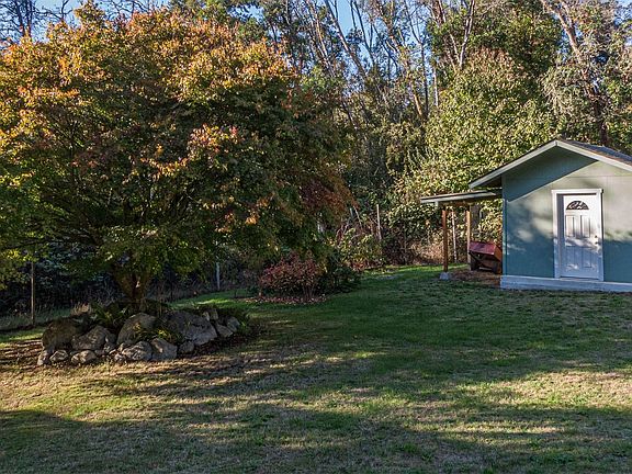 Picturesque and pretty, this easy home rests on a quiet, private half acre surrounded by ornate trees, fertile gardens, and sweet moments of intrigue at every turn. Tidy trex decks overlook the grounds, one covered for drizzly Northwest days, another to the south for entertaining and quiet afternoons outside. The home features 3 beds, 2 baths including a primary suite, & an open living space in the heart of the home. The kitchen hosts a breakfast nook backed by a panorama of cheerful, bright windows. The 320sf studio is precious! Create a home office, use for hobbies or storage. A second outbuilding adds versatility. Tramp Harbor Beach is south, the schools and town are a moment north. Live easily, gracefully in this tucked away gem!