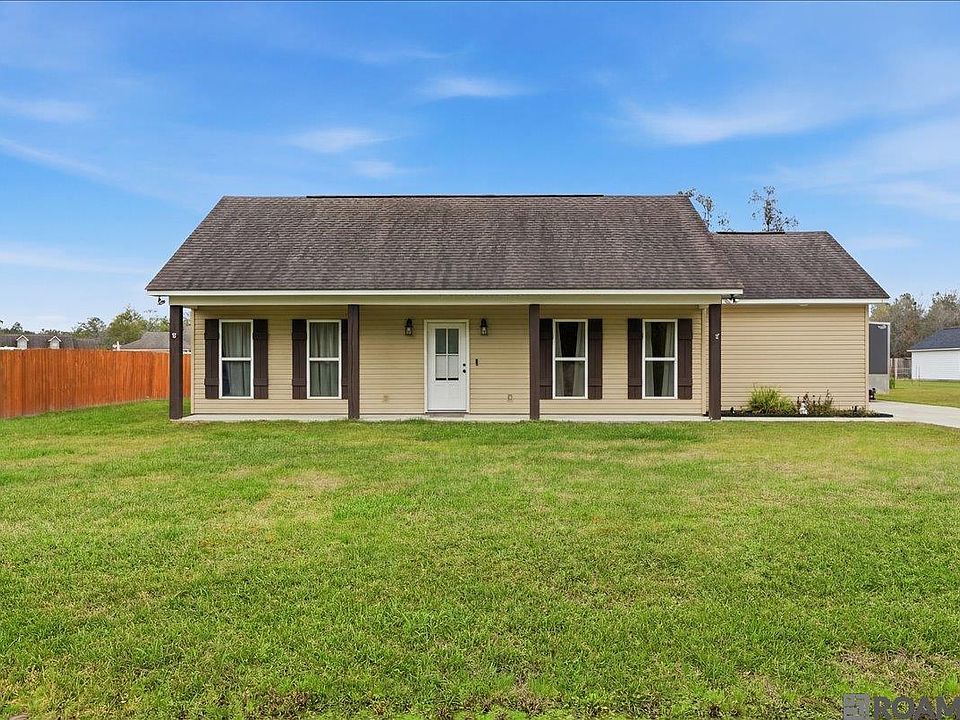 This charming home offers 3 bedrooms, 2 bathrooms, and 1,253 square feet of comfortable living space. The spacious primary bedroom boasts an en suite bath with a relaxing garden soaker tub. Featuring an open, split floor plan with sleek scored concrete floors throughout, the home includes beautiful granite countertops and stainless steel appliances. Enjoy outdoor living with a attached covered rear carport, an open patio, and a welcoming front porch with large cypress posts. Additional highlights include custom shutters and low-maintenance landscaping. All this is nestled on an oversized lot in a peaceful neighborhood. Schedule your private showing today! Photos are edited by a professional photo editor for marketing purposes. Some photos may have Ai Generated Furniture in the homes for visualization purposes.