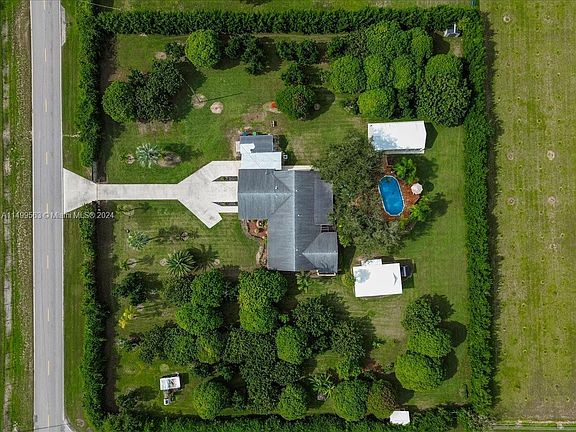 Welcome to this enchanting 4BR/2.5BA farmhouse, nestled on a 2.03-acre corner lot in the serene Redland area. The property includes a renovated studio style guest house w/ 1 bathroom, kitchenette, perfect guests or extended family. The main features wood floors, kitchen with granite countertops, stainless steel appliances, and a spacious master bath with a jacuzzi tub. Capitalize on the fruit grove with 25 avocado, 23 lychee, and 15 longan trees adding agricultural tax exemptions and income. Recent upgrades include a new roof (2019), HVAC, water heater, washer/dryer, and updated PVC plumbing. Fully fenced yard makes it ideal for pets and kids. The location offers easy access to 2 National Parks and the Florida Keys, making it convenient access to local amenities.