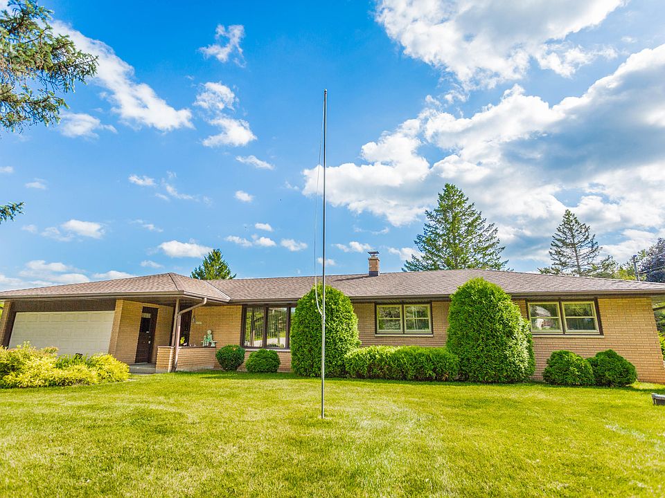 Solid brick ranch with walkout LL on a 1.72 Acre Lot offers room to roam both inside and out! Main level features LR w/large picture window, Cozy FR w/gas stove, Eat-in KIT includes all appliances, pantry, planning desk, pass through to DR, & doors to balcony overlooking the huge back yard. FDR has BICC. MBR has full, tiled BA w/SS & vanity. Two additional, generous BRs on main both with closet organizers. LL has doors leading to patio and backyard, full size windows, a fantastic space to finish for extra living space. Separate workshop area, storage, and half BA in LL. Laundry area off KIT as well as in the LL, both equipped with washer & dryer. Just on the edge of Brookfield, this wonderful home is close to shopping, restaurants, schools, parks, hospitals, churches, and more!