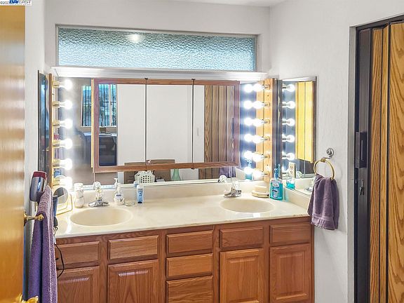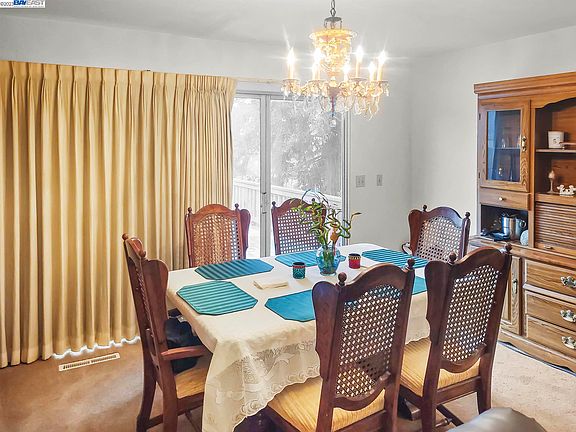 Great bones here is Castro Valley, this 4 bedroom and 3 bath home features 3 bedrooms up with primary bedroom w/walk-in closet and guest bath, large living room with fireplace, dining room and large eat in kitchen. The downstairs has a extra large family room, inside laundry area, hall bath and large private bedroom with walk-in closet. This could possibly be made for a private unit if desired. Central heat, newer roof, updated kitchen with tile counters and oak cabinets. There is a large deck outside of the kitchen and formal dining room. 2 individual car garage plus oversized 2 car carport under the decking. Large private driveway for up to an additional 8 cars if desired. Sewer Compliance through 2/14/2033! Close to Castro Valley Blvd, hospital, freeways.
