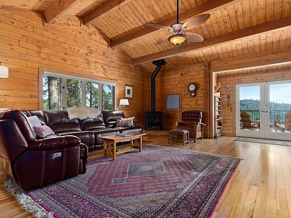 Nevada County living at its best with this LOG CABIN home with breathtaking VIEWS. Single level with 3 bedrooms plus office with private entry and 3 full bathrooms on 5.68 acres. This home has been updated with amazing attention to detail. New custom redwood decks to enjoy the foothill views. Kitchen has custom alder cabinets, granite countertops and stainless steel appliances. Master bathroom updates include Italian porcelain tile and beautiful live edge built in shelving. Two fenced in areas are available for garden enthusiasts. Custom 12x16 shed with covered deck for more storage. Room for RV parking and all your mountain recreational toys. High speed fiber optic internet available. The well inspection came in at 10.5 GPM plus a 2600 gallon storage tank. House is wired for generator hookup. See home video and virtual tour.