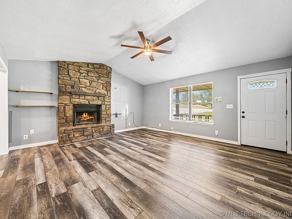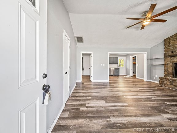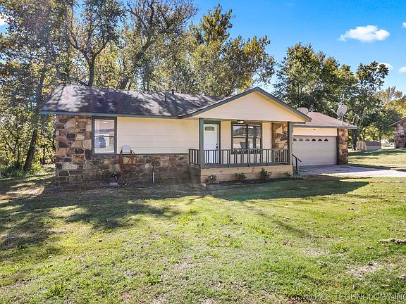 Black Friday Special! Seller to pay $5000 toward closing costs or point buy down. Country living on almost 1 acre just 20 minutes from Downtown Tulsa! Nestled in a cul-de-sac on a huge lot with trees for that country feel. Newer updates throughout this home. New paint, inside and out. From the covered front porch you enter into good size vaulted living room with stone fireplace, wood like floors all open to the kitchen with newer appliances, tile, counter tops. Wood like floors through out the house. Master has private full bath. Two other bedrooms with hall bath. Both baths have updated tile, sinks, toilet, plumbing, vanities, hardware, lights. Interior and Exterior doors newer, NO POPCORN CEILINGS! Inside utility. Backyard features deck and large backyard that is very private. This home is close to expressway.