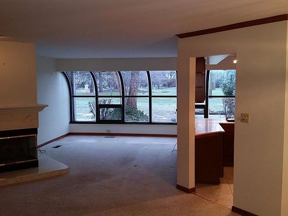 Brick and Cedar Main Level 2 bedroom and 2 ceramic full bath condo. Solid six panel doors throughout. Open dining are leads to the living room with multi angled marble fireplace and curved atrium windows that overlook private patio and wooded common area. The kitchen has an abundance of cabinets, corian counter tops and convenient pantry.