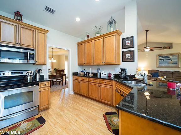 Beautiful home in the highly sought after Parish Lakes community! Situated on a large pie shaped lot, the home features a fenced back yard, gorgeous landscaping, pergola over the back patio, a large 12x20 detached work shop, storm shutters, double car side entry garage, granite countertops in the kitchen, luxury vinyl plank flooring, double vanity and large walk-in shower in the master bath, two walk-in closets in the master bedroom, large baseboard throughout, vaulted ceilings in the living area, and a bonus room/study. Parish Lakes is conveniently located only minutes from the Tanger Outlets, OWA, Lowe's/Home Depot, Academy, and many other shopping, dining, and entertainment attractions. Traveling North to I10 or South the the beaches is a breeze with easy access to Hwy 59 and The Foley Beach Express.