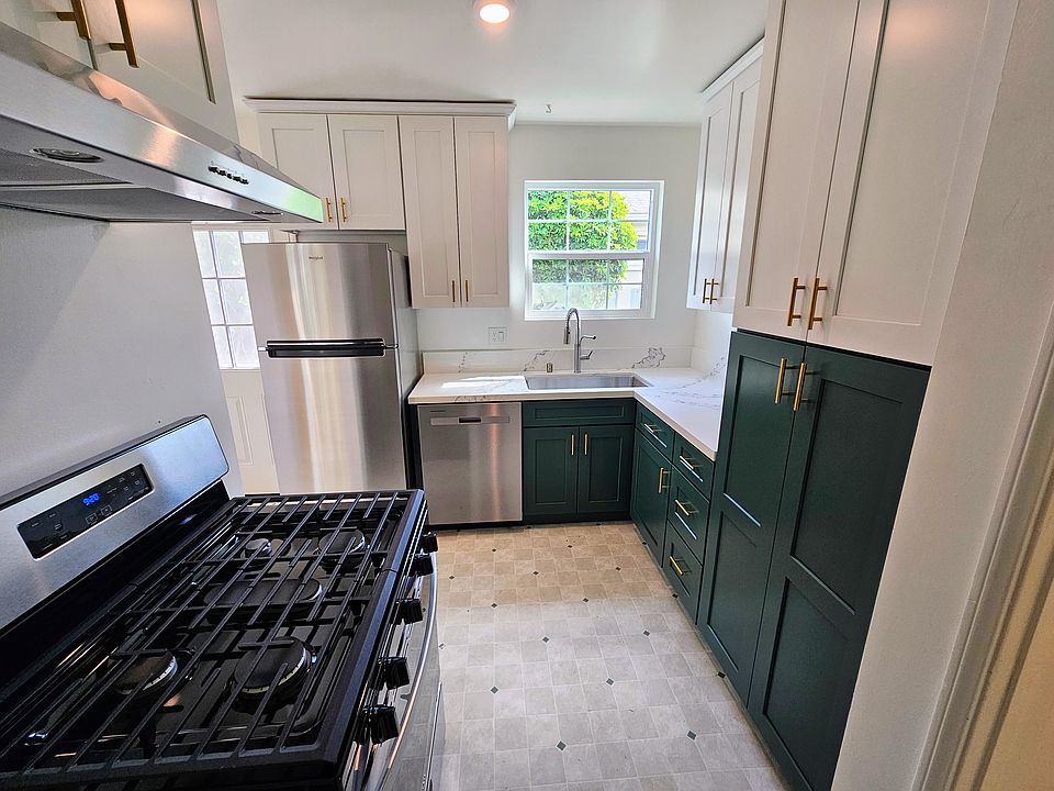 Fully remodeled kitchen & bathroom with modern finishes, brand new range and refrigerator