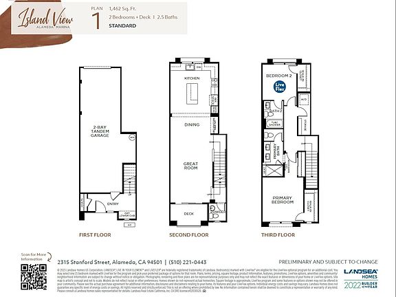 With 98 upgraded townhomes and sweeping views of the marina, a new notion of home awaits at Island View at Alameda Marina. Seven unique floor plans ranging from approximately 1,462 to 2,389 square feet offer you the space to unwind, to work from home or to entertain with ease. Select homes include rooftop decks—ideal for those summer days of leisure or even a quick, scenic coffee break.