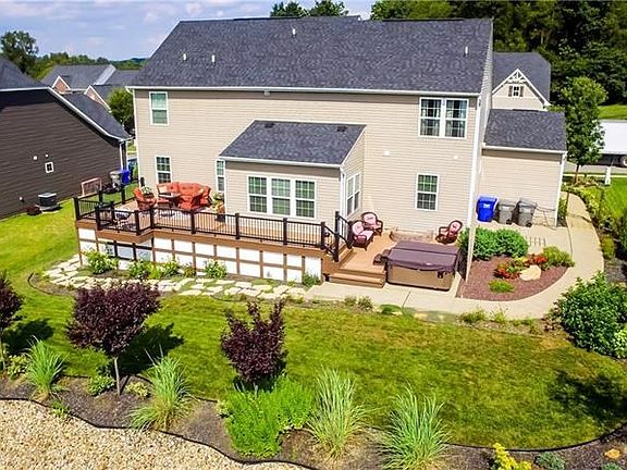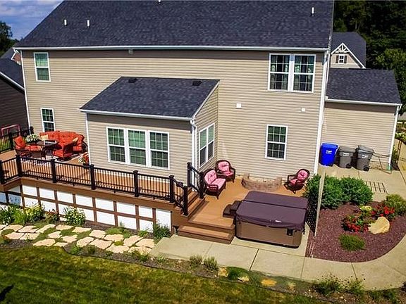 One of the largest custom built homes in Weatherburn Estates (Ravenna Model). This home is complete with an open floor plan with hardwood floor throughout the first floor. The gourmet custom Kitchen has a large island with granite opening to a morning room and family room with gas fireplace. There is an oversized tiered deck complete with hot tub overlooking the well manicured landscaped lawn. (Don't forget to look under the deck that offers tons of storage. The lower level is finished with a 6th Bedroom and full bath. A perfect area for all the children's play area. The bedrooms are all oversized with a 2nd floor laundry. There is an attached 3 car garage with a lift that is included making it 4 cars ready. All located in the Mars School District. Owner is ready to go.