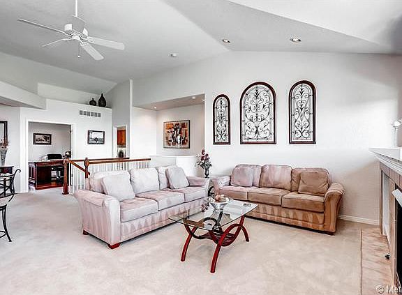 Beautiful Ranch property located in the Heritage Vista Ridge Neighborhood. On the golf course with spectacular mountain views. This property features 3 bed, 3 bath, 2 car attached, oversized garage, slab granite, cherry cabinets, kitchen island with a gas cook top, great open floor plan with vaulted ceilings, main floor master suite featuring corian counter tops and travertine tile. Fully finished garden level basement features a large rec room, surround sound and a built in entertainment center. Front Porch, Security System with temperature alarm, plexiglass covers on west facing windows and metal window well grates. Custom awning and screens with an extended deck, perfect for entertaining all your guests.