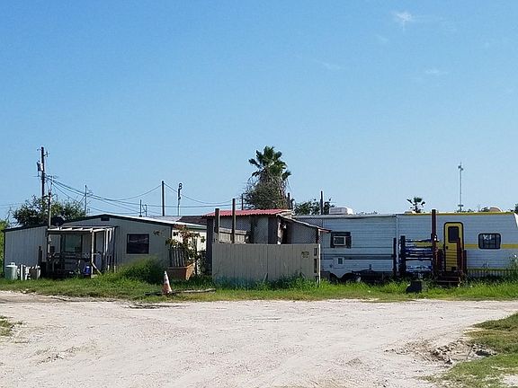 This property has one and a half acres with 2 septic tanks and 1 - 165 ft deep well, per owner. It shares the pond with the neighbors in front. There is currently only 1 house which has a 1 bedroom, living area combination, separate kitchen and bathroom. The size is 660 per owner and Aransas CAD. It has been there since about 2000, also per owner. There is actually 1 store shed and 1 manufactured home that is used as storage. Current owner has the house rented along with several Rvs and 1 of the manufactured homes. There are several concrete pads and all the units have electric. The back half acre still needs to be cleared. Please check with the city of Aransas Pass in order to see what can currently be done with the property. Owner will not do any repairs. Currently trying to remove extra vehicles, Rvs and other debris prior to selling, however may not be capable of getting it removed.