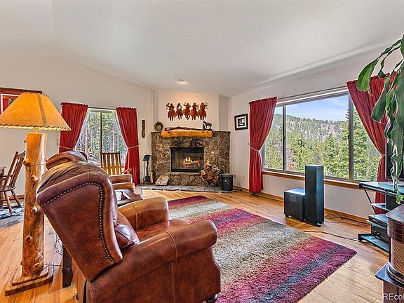 Stunning views from this beautiful mountain home. No traffic noise - just the breeze through the pine trees and the songs of the birds. Accessible from Evergreen or Idaho Springs via county maintained roads, this home feels like your own private retreat but with the conveniences of town not too far away and Echo Mountain ski area close by. Lounge on the deck, gazing at the views. Enjoy the crackle of the wood burning fire in the open Great Room with kitchen, dining and living room under a vaulted ceiling. The master suite completes the upper level and in the lower level you'll find the family room, additional bedrooms plus separate office space. There's so much to love about this home. This is owner occupied so prior days' showing notice is needed to arrange for dog care. Please follow showing instructions related to health and safety for showings during this time.