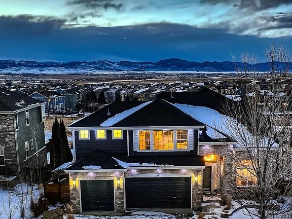 Indulge in the ultimate golfer's paradise with this captivating property boasting breathtaking golf and mountain views! Set in the desirable Vista Ridge community in Erie, this residence is a haven for golf enthusiasts. Featuring 4 bedrooms, 4 bathrooms, and over 4701 finished square feet, this meticulously maintained and fully renovated home is a true masterpiece. The kitchen, designed for a chef's dream, exhibits gleaming quartz countertops, custom cabinetry, and top-of-the-line appliances. The adjacent breakfast nook opens to a delightful deck, providing panoramic mountain vistas. The main level also showcases a superb home office, a family room with a cozy fireplace, a dining room with a custom fish tank, and a living room with soaring vaulted ceilings. Additionally, there's an owner's entry/laundry room right off the 3-car garage. Abundant natural light, numerous upgrades, and exquisite finishes enhance the allure of this home. Upstairs, explore 2 secondary bedrooms, a full bath, and a spacious loft with views of the Rocky Mountains and the golf course. The opulent primary suite includes a generous bathroom with dual vanities, a large soaking tub, a shower, and an expansive custom closet. The fully finished walk-out basement was completely remodeled in 2023 and expands the living space, featuring an additional bedroom and bathroom. This great basement area also includes an enchanting theater area for movie aficionados, a kitchen area with all new appliances, new cabinets, premium carpet and LVP, and waterfall quartz bar countertop, and new light fixtures. This recreation space creates a uniquely delightful entertaining experience! Situated on a premium lot backing to hole 16 of the Colorado National golf course, the professionally landscaped backyard boasts a large patio, a picturesque water feature, outdoor firepits, shed, newer hot tub, outdoor kitchen, and gazebo—all ideal for savoring the splendid Colorado seasons.