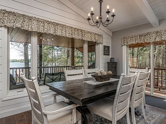 Recent significant upgrades to this remarkable property include all new HVAC and water filtration system. This 3-bedroom, 3-bathroom home has a beautifully remodeled and inviting interior. The open concept living area includes a well-appointed kitchen, dining area and living room - with large woodburning fireplace and views of the water. A second living room space provides the perfect space for entertaining. The primary bedroom has a large attached bathroom and walk-in closet. Your family and friends will love having their own guest suite complete with attached bath. Located on full recreational Muskellunge Lake, the property features rip-rap along the 252' of level, sand frontage. Enjoy summer nights sitting out on the large u-shaped dock or around the firepit. Additionally outside you'll find a blacktop drive, landscaped yard, covered deck and 30' x 40' detached garage with plenty of storage. Most furnishings included, don't miss this turn-key opportunity!