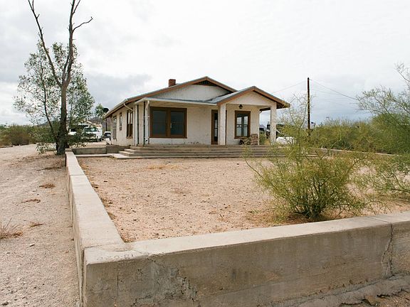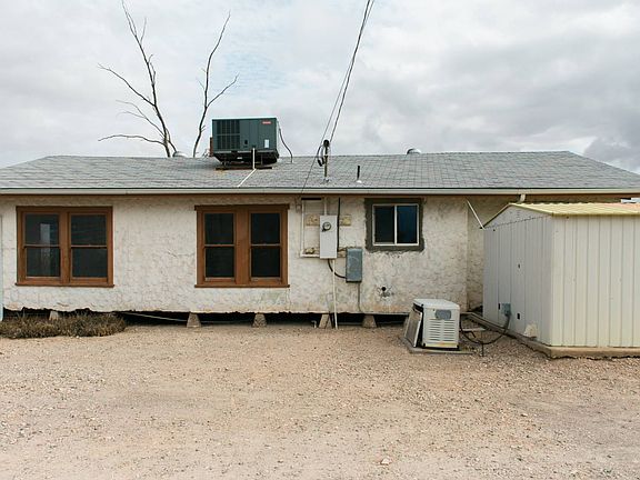 A dirt road leads to over 5 acres of desert landscaping. There is a 2 Bd/1 Ba home sitting on the high point of the land. It has been partially updated with new doors, new windows, new kitchen and new bathroom. There is a garage and two storage sheds on the property. One of the many features is the view of the mountains and the night skies.