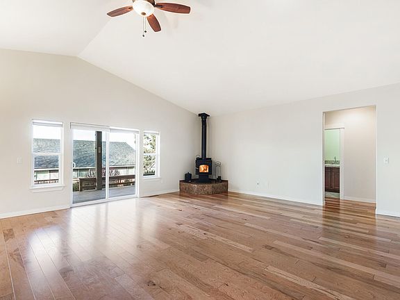 Well cared for Single Level home in NE Bend. Fantastic location a block from Mountain View Park and near schools, shopping, restaurants and medical. This open great room floor plan is light and bright with vaulted ceilings, wood stove, ceiling fan, and direct access to the outdoor patio. Beautiful chef's kitchen with a large island, stainless steel appliances, including refrigerator and large pantry. The Primary Suite with soaking tub, stand up tile shower and walk in closet has privacy from the other bedrooms. The landscaping is low maintenance with mature native plants. Enjoy a picture perfect view of Pilot Butte from the expansive back deck featuring sun shades for privacy. The large flat driveway has ample parking and leads to an attached 2 car garage.