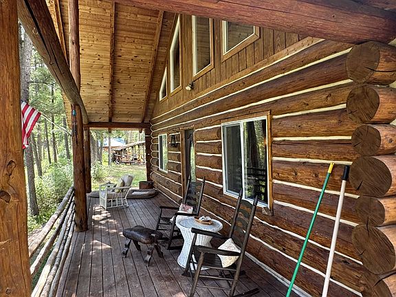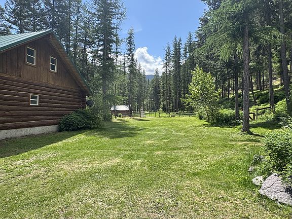 Gorgeous, accessible 19 acre property just 2 miles from I90 and 25 miles to Missoula and the airport. Property is bordered by Lolo National Forest to the West and the North. Hand hewn log home with spacious deck overlooking Petty Creek, which runs through the property. Large double garage with loft storage and lean-to on both sides for storage. Four stall barn with matted stalls, tack room, water and power. Property is fenced with separate pastures with shelters and a big round pen. Home features 2 bedrooms and 1 full bath. Open living, dining and kitchen area with quartz countertops and stainless appliances. Heat with a Rinnai propane heater or woodstove. Wood shed will hold 4 cords of firewood. Beautiful 7 acre meadow with Petty Creek running next to it.