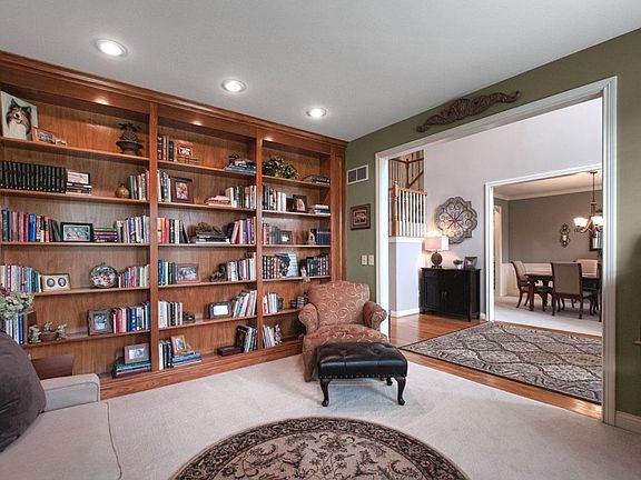 • Living Room Feat: Window Treatment, WW Carpet, Bookcases