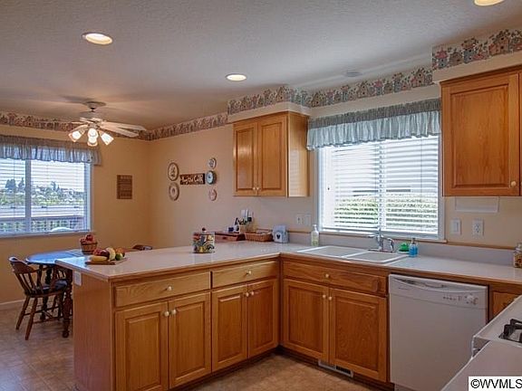 This home is a "show stopper". Beautiful oak hardwood entry, open vaulted living room, pull out drawers in kitchen cabinets. Master bedroom on main floor for convenience. It has a brand new roof put on in 2014; skylights add wonderful light, and it has a large deck off the kitchen for those summer BBQ's. Loads of storage underneath, large backyard to play in, and all in excellent condition.