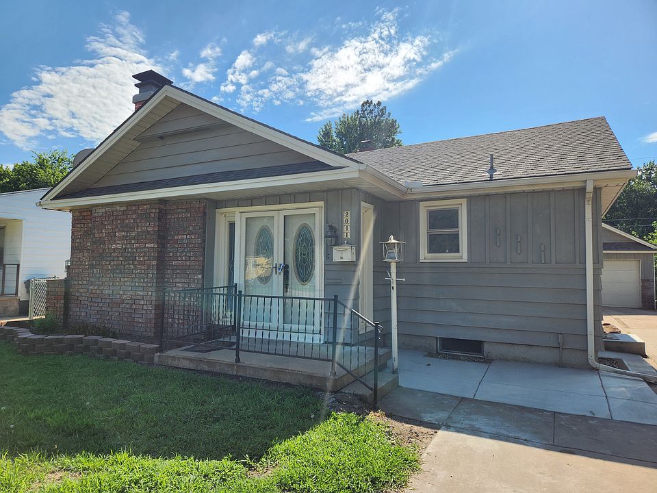 This large 1958 home looks small from the outside, but extremely large inside. 1958 sq ft (1452 sq ft on main floor + 506 sq ft finished in bsmt). Huge brick fireplace in living room. Large formal dining room. Kitchen has all appliances; frig, stove, double oven, cooktop, dishwasher, and marble countertops. Large master bedroom with its own private bathroom and sliding glass door onto a covered deck. Other 2 bedrooms are large also. Basement has a large family room, den-office, and unfinished utility room with washer-dryer hookups. Oversized 1 car detached garage and a pit for working on cars. Fenced yard, covered deck & concrete block patio. 2041 S Ellis. Available now. $1350 rent. $1350 deposit. $40 application fee per adult. Pet negotiable. 1 year lease. Renters insurance required. No smoking allowed in home.